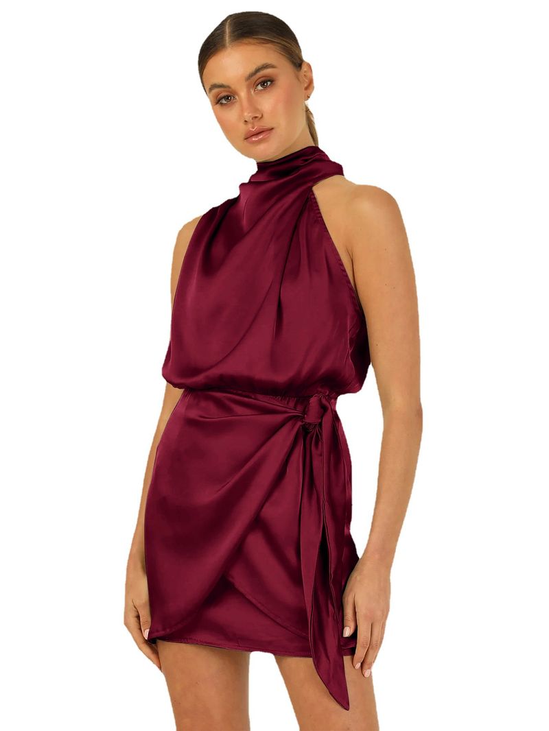 فستان ساتان ناعم للنساء فستان حفلة فستان زفاف المشاهير فستان رقبة معلقة تنورة قصيرة بلسعة