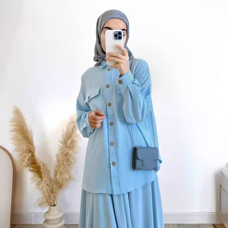 ملابس نسائية ربيع ملابس مسلمة للنساء مجموعة ملابس نسائية فضفاضة مع قميص ذي أكمام طويلة وتنورة