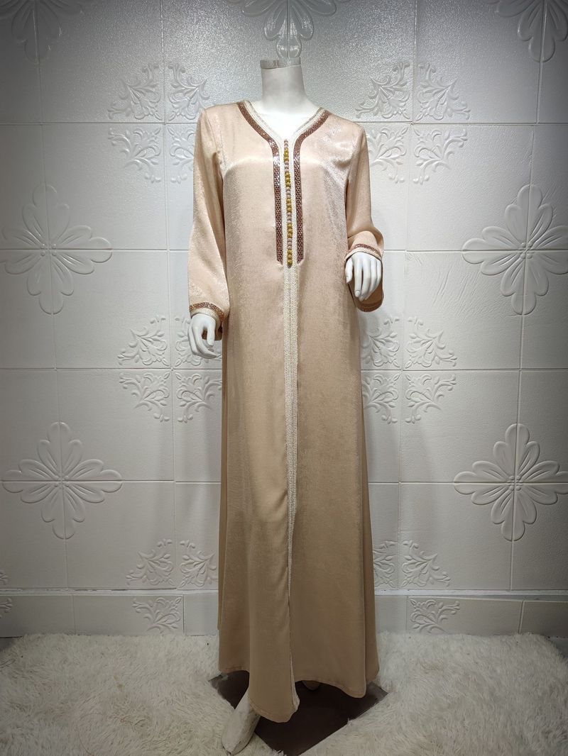 - تطريز ذهبي عند الصدر وعلى أطراف الأكمام